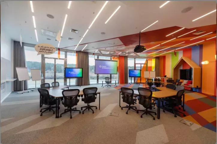 Основная аудитория корпоративного центра выполнена в инновационном дизайне, отлично подходит для проведения стратегических сессий, тренингов на развитие креативности и мозговых штурмов