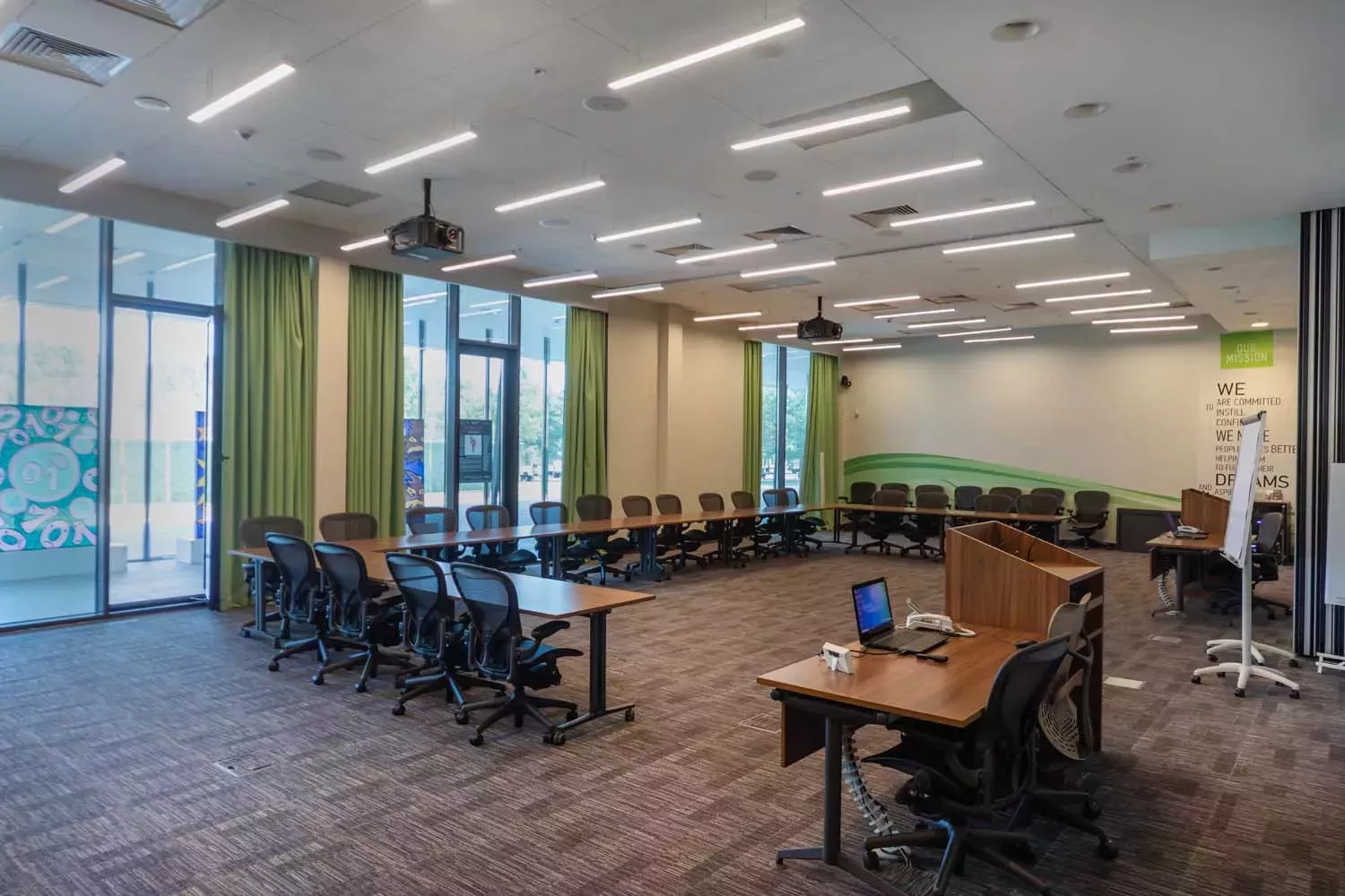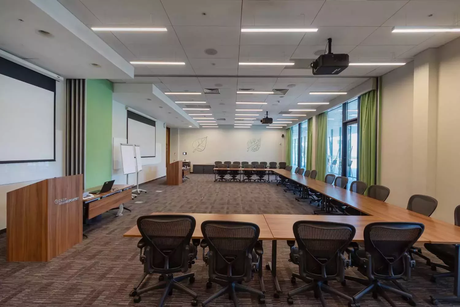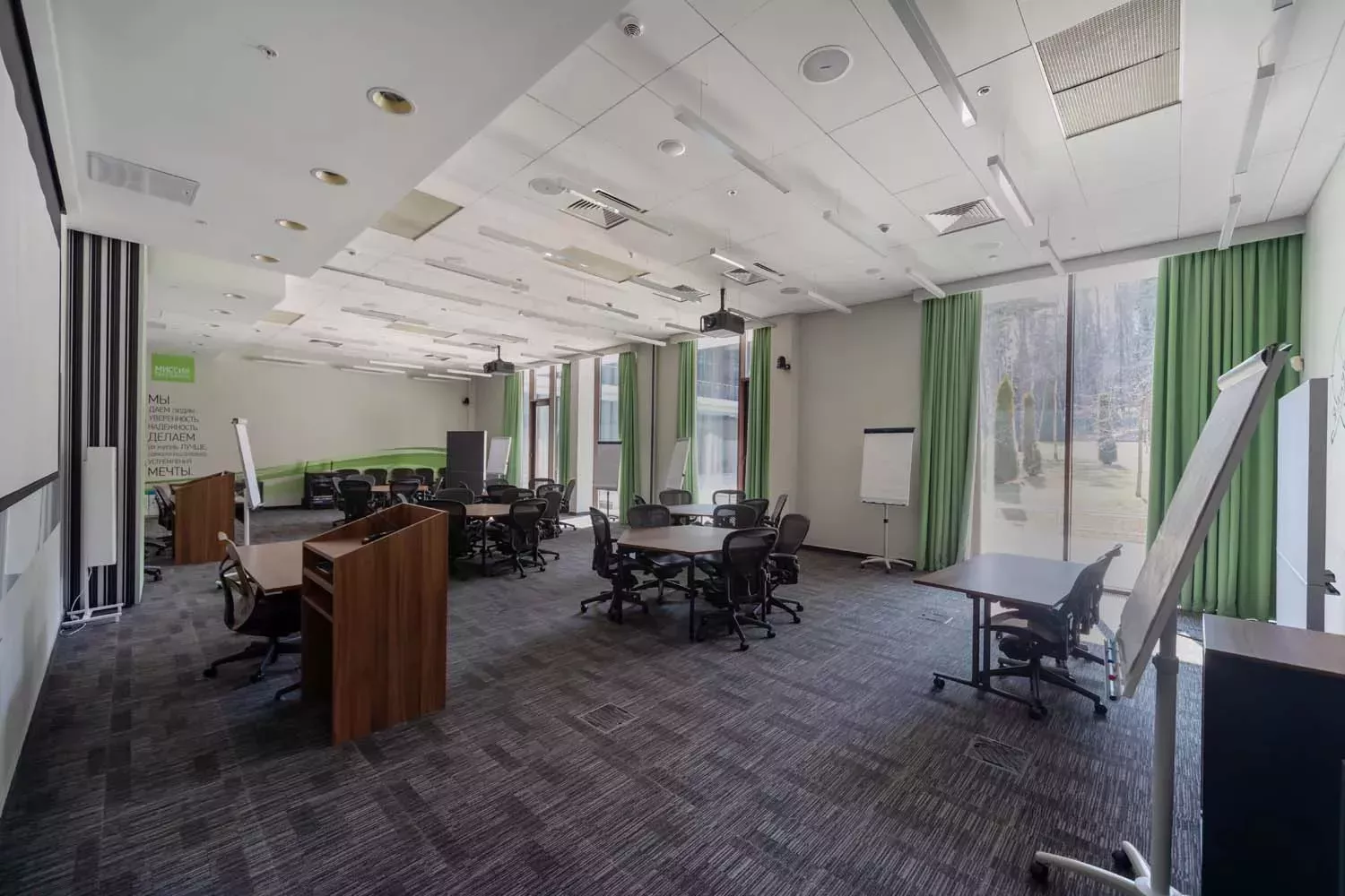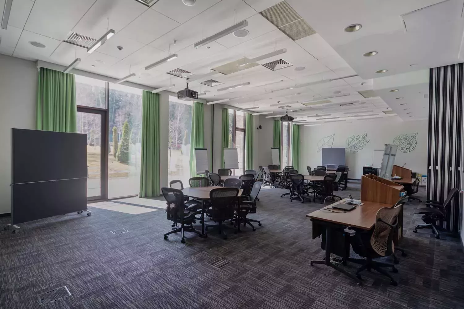 Два зала со звукоизоляционной перегородкой, которые могут быть использованы как единое пространство, так и по отдельности