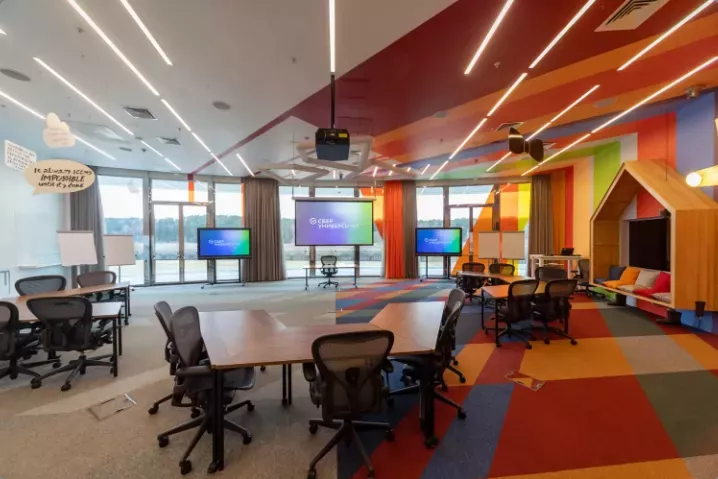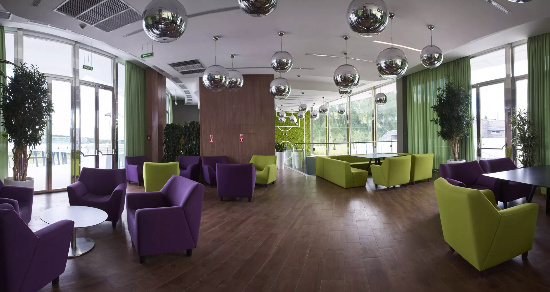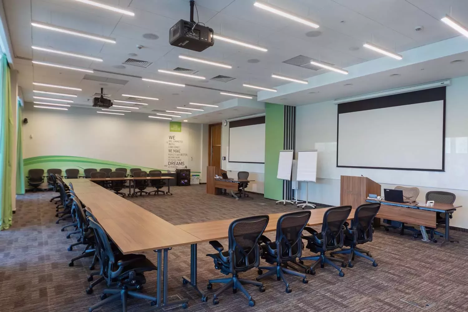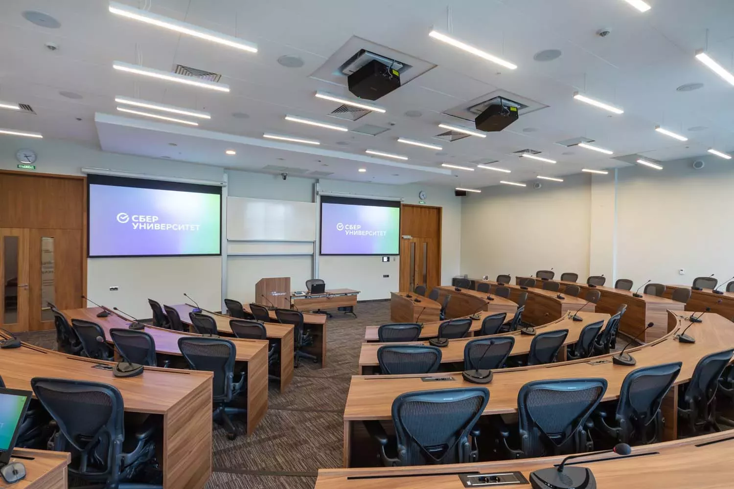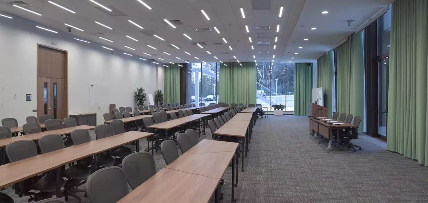 Панорамная аудитория в корпоративном парке. Подходит для проведения совещаний и переговоров