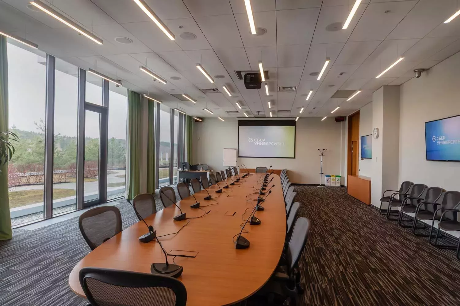 Зал предназначен для проведения переговоров, а также подойдет для бизнес-сессий и групповых работ