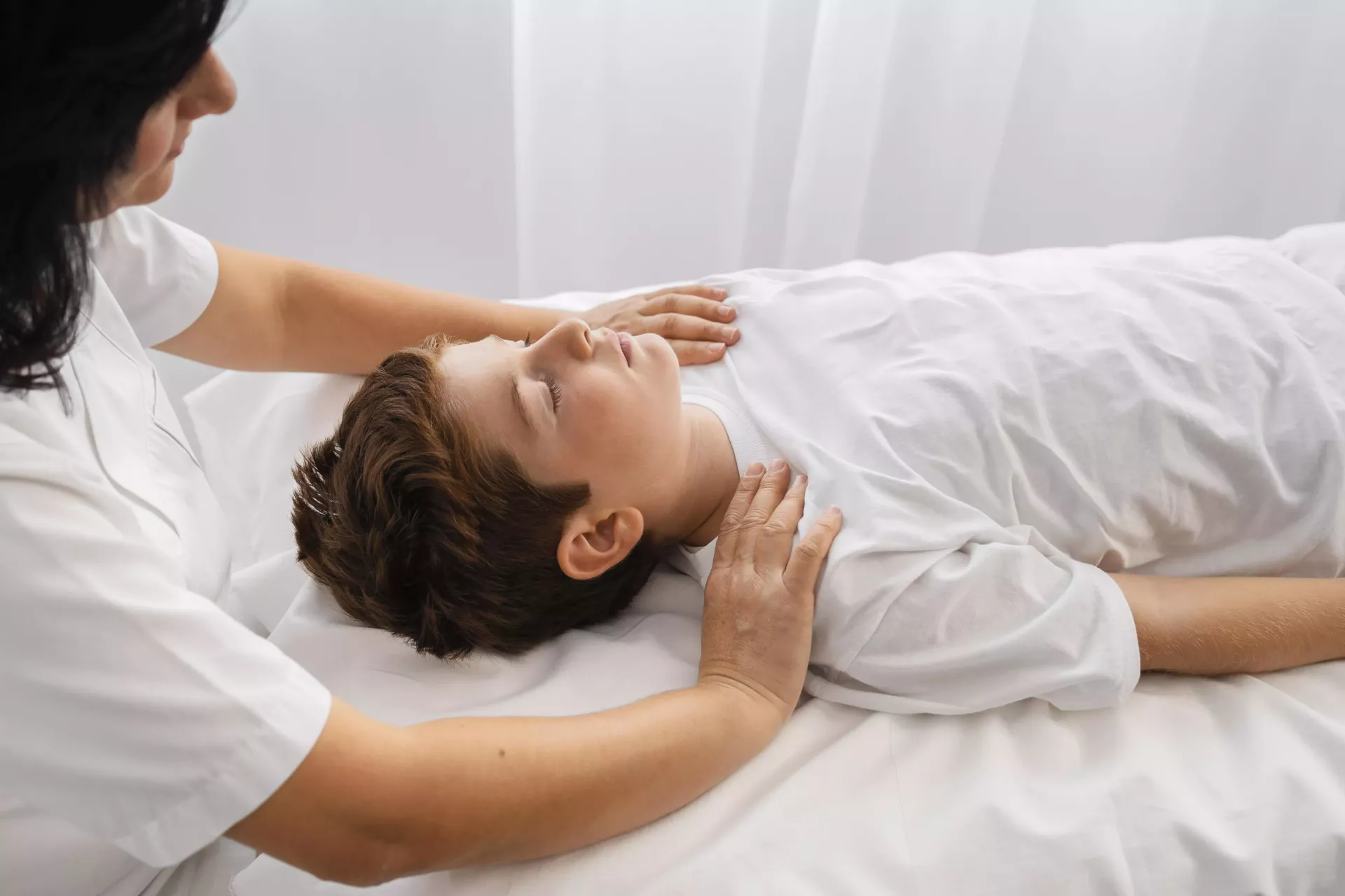 Ручной массаж всей поверхности тела от шейно-воротниковой зоны до стоп.